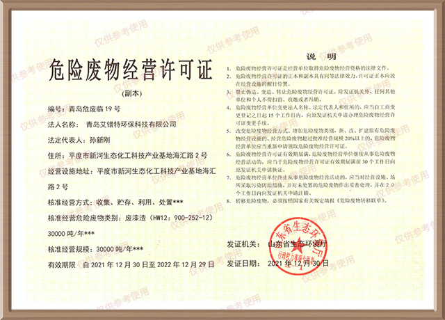 我們一直恪守“減量化、再利用、資源化”的原則專注于環(huán)保事業(yè),致力于通過專業(yè)化的服務,通過持續(xù)發(fā)展的資源循環(huán)利用過程,極大程度降低危險廢棄物對環(huán)境的危害。努力構(gòu)建和諧的生產(chǎn)經(jīng)營環(huán)境,實現(xiàn)企業(yè)經(jīng)濟效益、環(huán)保效益和社會效益的良好統(tǒng)一。